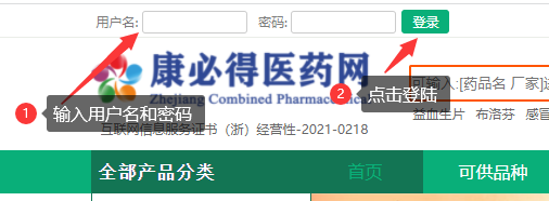 一、浏览器输入网址www.zjkbdyy.com进入浙江康必得医药网。